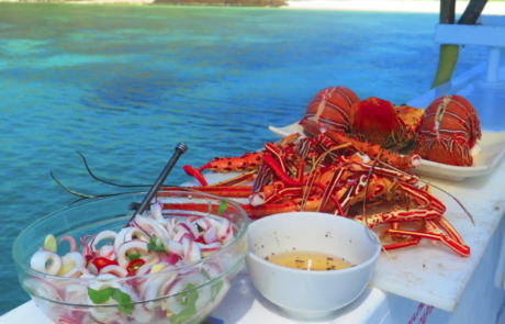 The individually designed lodges blend seamlessly along the island foreshore; each private villa with its own pristine beachfront and sea view. The meals are a blend of homegrown produce and freshly caught seafood. Menu examples include Crayfish Ravioli, Mud Crab, Red Emperor with Beurre Blanc reduction, Szechuan Crispy Quails or Steam Barramundi.